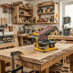 Se a roto-orbital representa equilíbrio, a lixadeira de cinta representa força. Trata-se de uma ferramenta projetada para remover material rapidamente, utilizando uma cinta contínua de lixa que gira em alta velocidade sobre dois roletes.